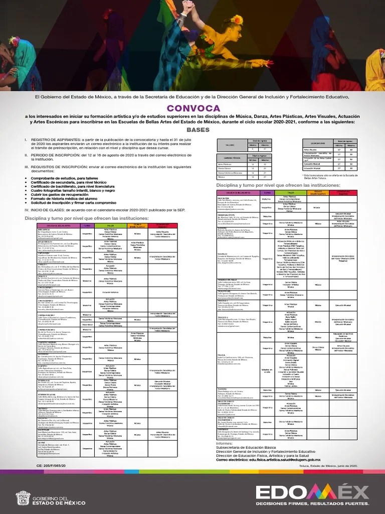 Convocatorias becas estímulo a las vocaciones científicas 2021 abierta hasta el 03.12.2021 Subir al sistema liga de video para proceso de ubicación del 22 de febrero al 29 de marzo de 2021, únicamente los aspirantes a los programas educativos de música y enseñanza de las artes.consulte las caracteristicas en el portal de la convocatoria en el botón: Podrán participar todes les estudiantes de la esba tanto de artes visuales, arte dramático y danzas folklóricas, cea y tod que quieran presentar obras creadas entre los años 2019, 2020, 2021 inclusive, ya sean trabajos de cátedra individuales y/o colectivos, u obras realizadas fuera de las cátedras. 775 | 12 de noviembre de 2021.. Instituto nacional de bellas artes avenida paseo de la reforma y campo marte s/n, col.