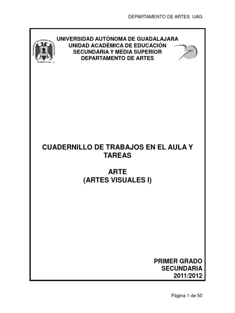 Acercamiento al mundo de las artes visuales 58 secuencia 1. Su firme compromiso con la naturaleza, pone como prioridad en cada uno de sus procesos la mantención del equilibrio medioambiental y la. Departamento de artes cuadernillo de trabajos en el aula y tareas artes (artes visuales iii) tercer grado secundaria 2011/2012 página 2 de 50 universidad autónoma de guadalajara unidad académica de educación secundaria y media superior artes visuales iii nombre del alumno: